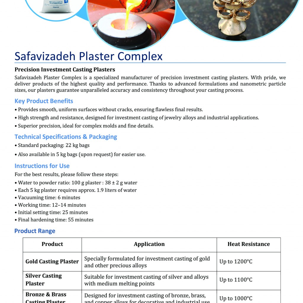 گچ نسوز ریختهگری طلا ، نقره ، مس ، برنج